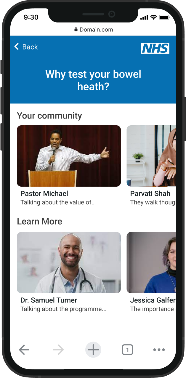 • Delivery of digital educational resources tailored to each demographic e.g. educational content will be designed for target patient cohorts to reduce misconceptions and overcome barriers, to improve confidence to uptake screening.